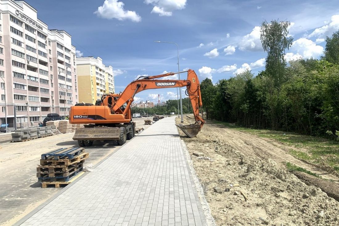 На участках дороги, расположенных со стороны улиц Измайлова и Антонова, уложены слои асфальтобетона. Дорожники занимаются укладкой тротуарной плитки и установкой бордюрных блоков.