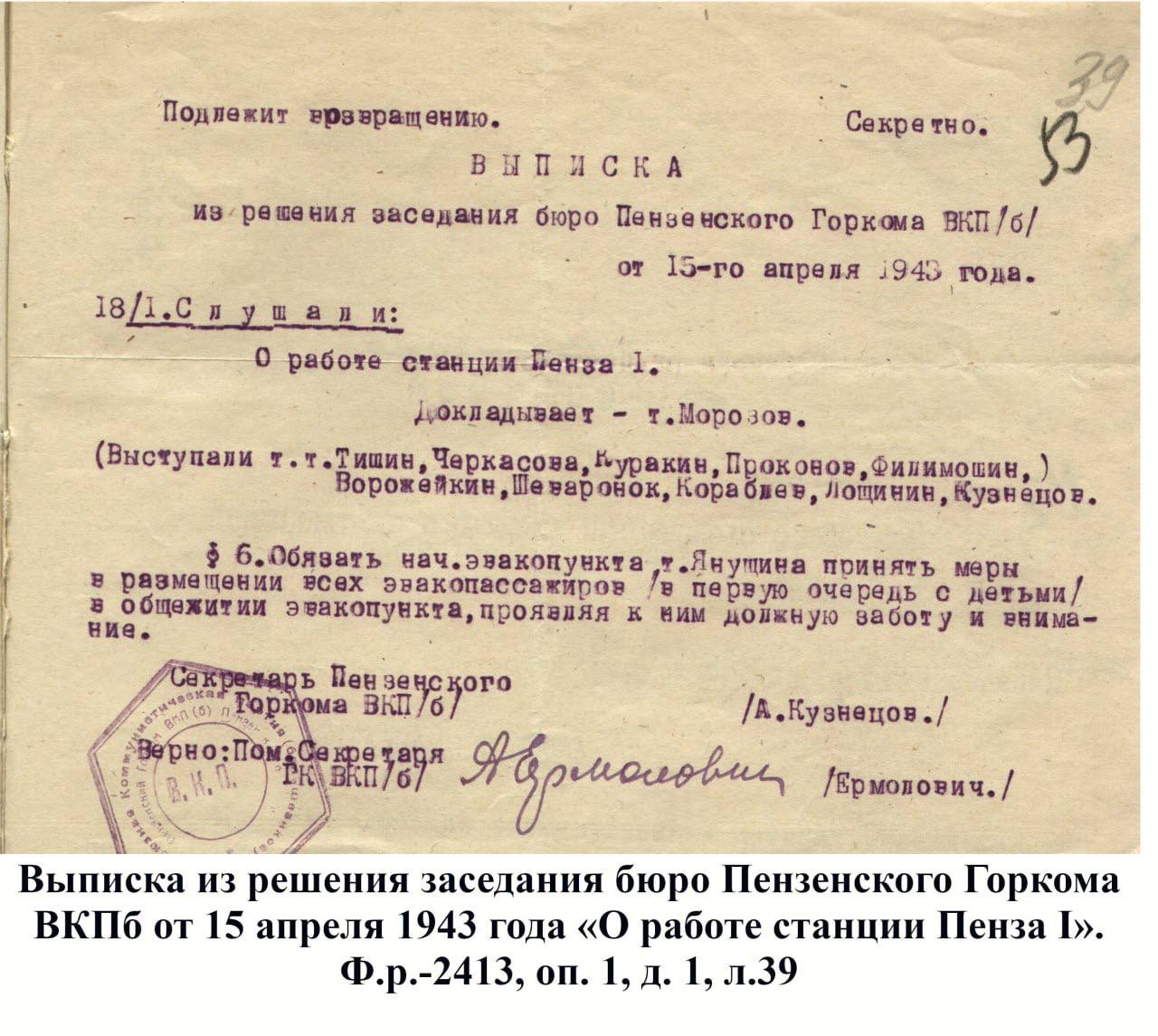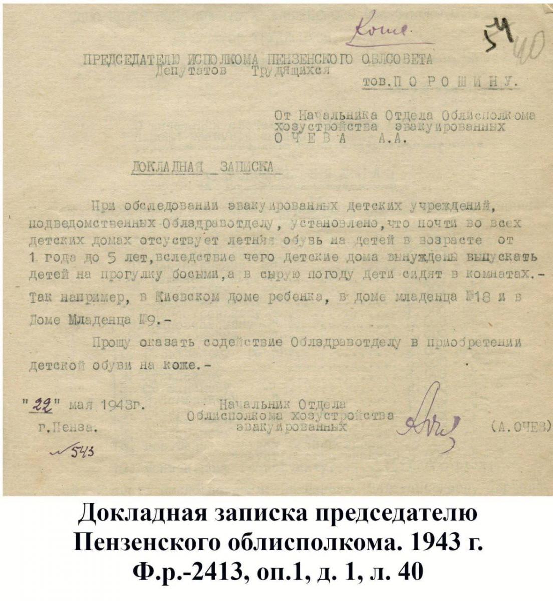 К 15 августа 1941 года в Пензенскую область прибыли 969 воспитанников 11 детсадов. В детские дома поступило 588 эвакуированных ребят, а уже через год их число выросло в четыре раза. Детей размещали в домах отдыха, санаториях, пионерских лагерях, в домах и квартирах жителей области.