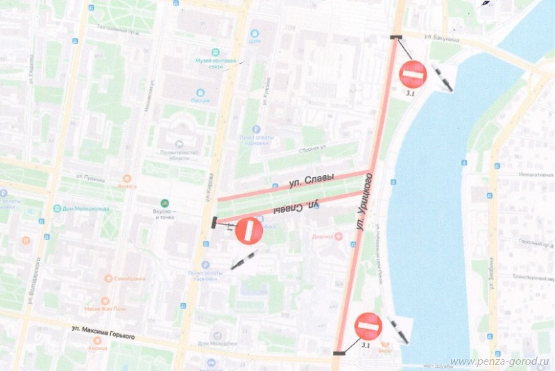 В связи с проведением праздничных мероприятий, посвященных Дню России и Дню города, в Пензе изменится схема дорожного движения.
