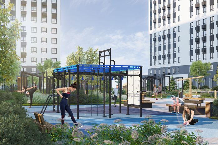 Строения №5 и №6 образуют двор «Василек». Он располагается в центре «Лугометрии», что дает преимущества жителям.