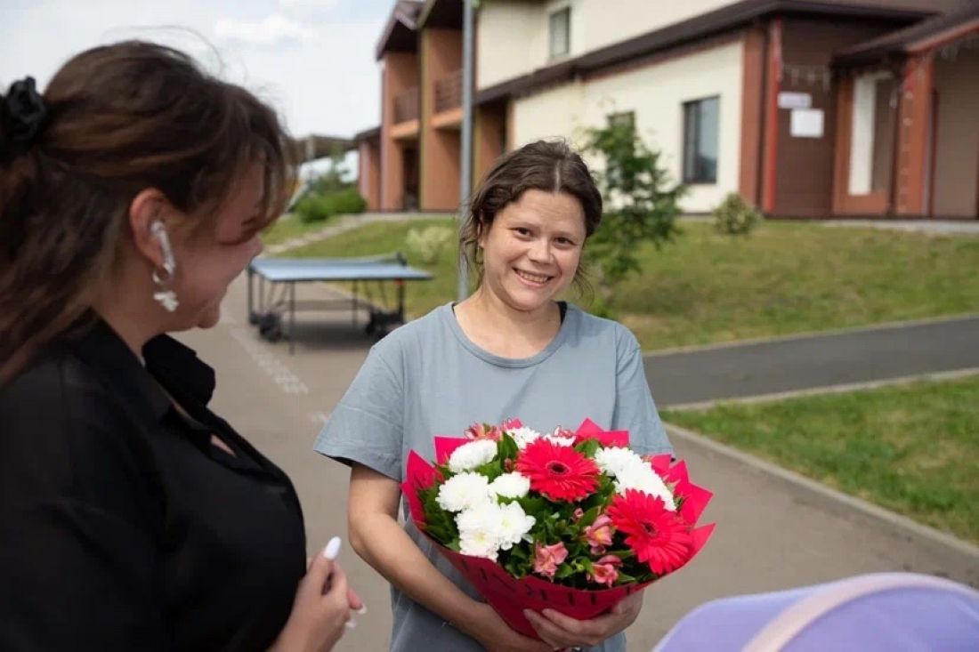 Исполнительный директор АНО «Квартал Луи» София Львова-Белова приехала поздравить молодых родителей с пополнением семьи. Валерий Соседов также показал ей, как развивается его проект по выращиванию овощей, микрозелени, ягод, и угостил очередным урожаем.