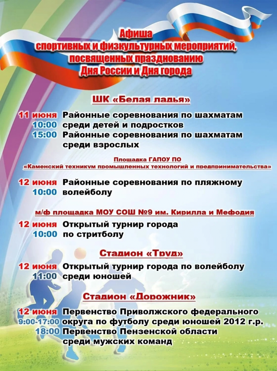 12 июня на территории всей страны отмечается государственный праздник — День России. В этот день во всех районах Пензенской области пройдут праздничные мероприятия.