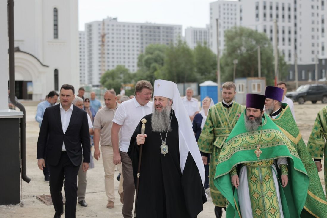 Перед началом службы советники ГК «Территория жизни» Роман Семенов и Федор Тощев показали Владыке Серафиму строящийся храм, рассказали о ходе работ и планах по благоустройству прилегающей территории.