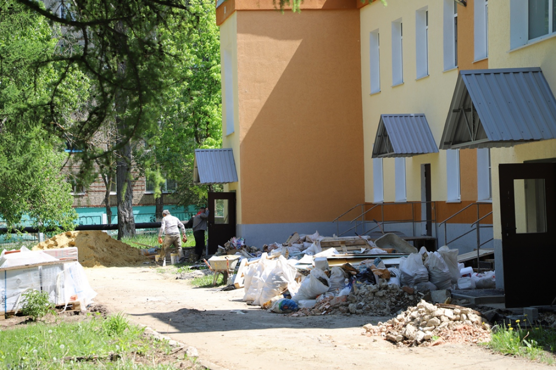 Главный врач больницы Сергей Никишин рассказал, что к середине июня подрядчик завершил черновую отделку стен на 1 и 2 этажах, помещения готовят под покраску. Кроме того, заменено санитарно-техническое оборудование, электрические сети и сети водоснабжения медицинского учреждения.