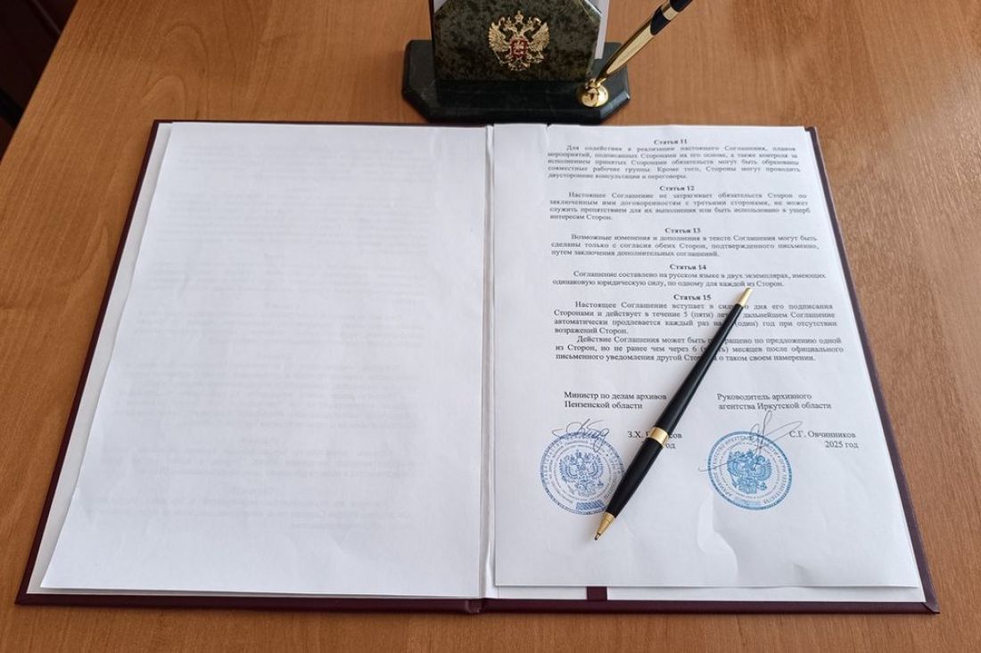 Заключено соглашение о сотрудничестве между министерством по делам архивов Пензенской области и Архивным агентством Иркутской области.
