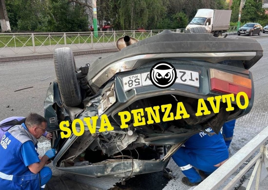 На Южной поляне в Пензе автомобиль перевернулся на крышу: трое в реанимации