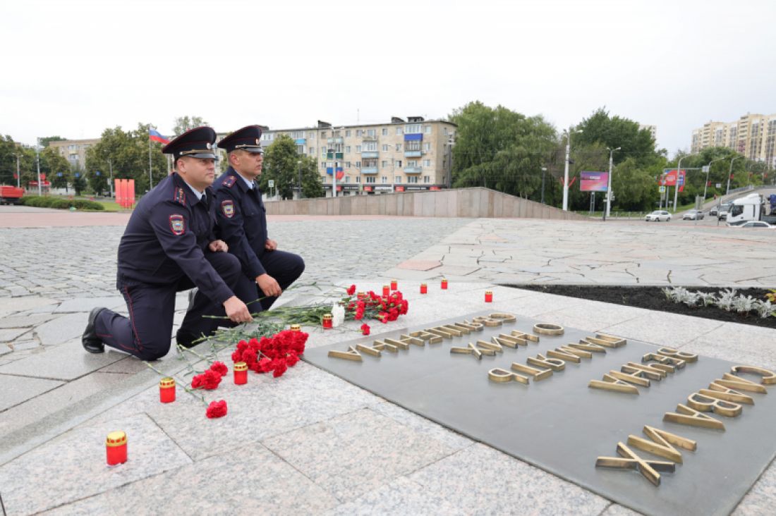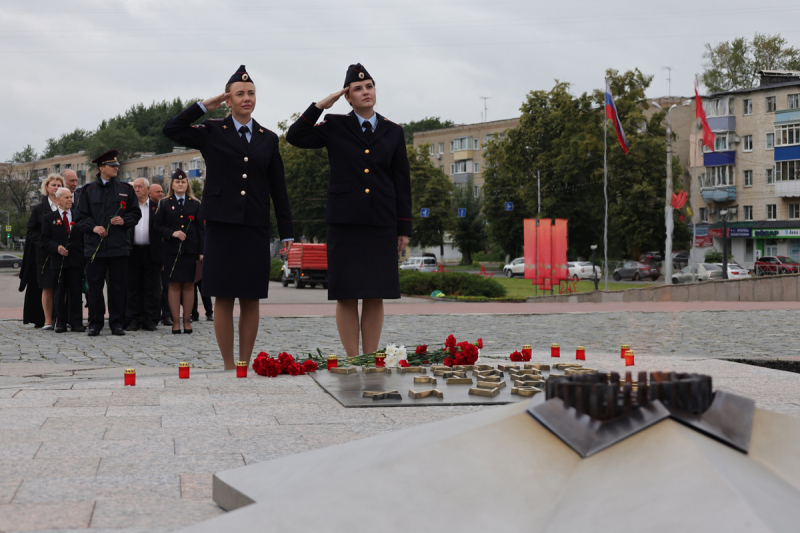 Участники акции минутой молчания почтили память павших на полях сражений и возложили цветы к Вечному огню.