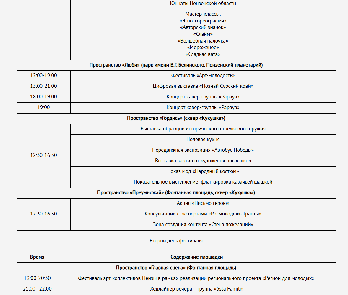 Кроме того, во второй день в парке Белинского с 12 до 19 часов продолжится фестиваль «Арт-молодость».