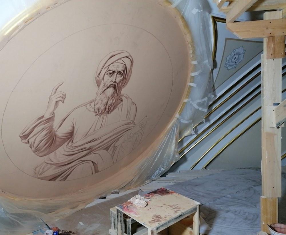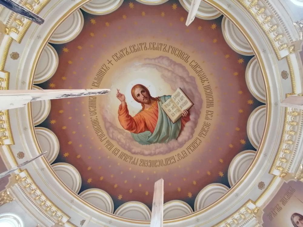 Главный архитектор мастерской Николай Абоимов объясняет, что уровень росписи наивысшего качества - у ликов на изображениях иконописная проработка. Обычно при росписи куполов ее упрощают из-за высоты, так как детали не видны снизу, а мастеру трудно оценить работу на таком расстоянии.