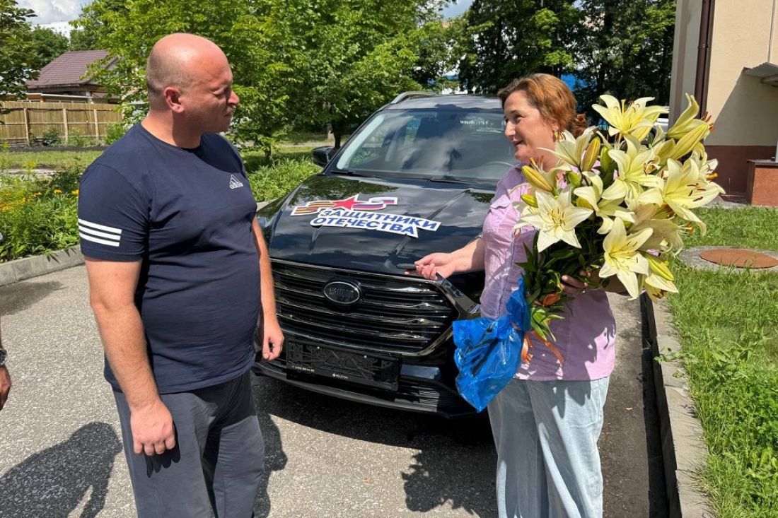 Руководитель регионального филиала фонда «Защитники Отечества» Ольга Клейменова передала ключи от машины новому владельцу.