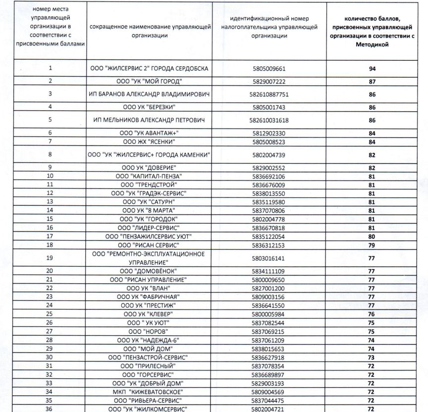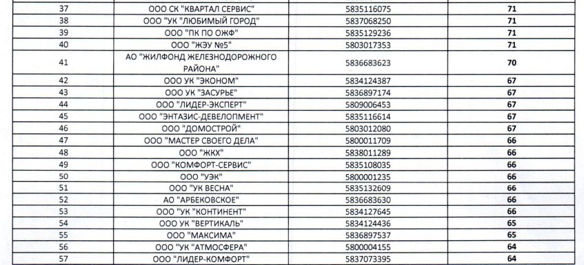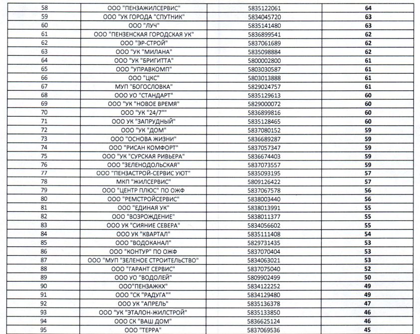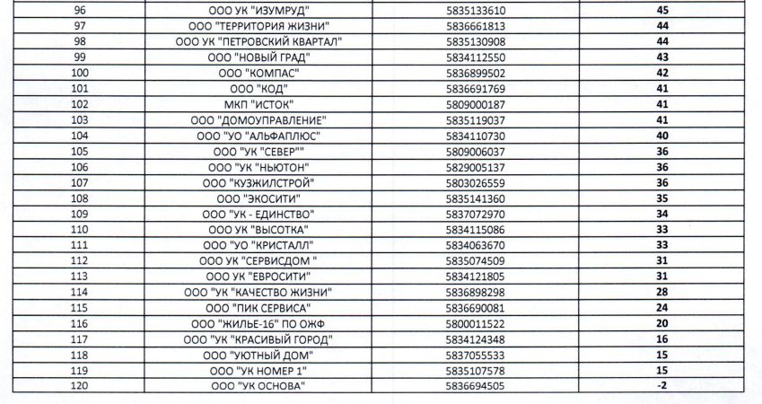 Опубликован первый рейтинг управляющих компаний Пензенской области