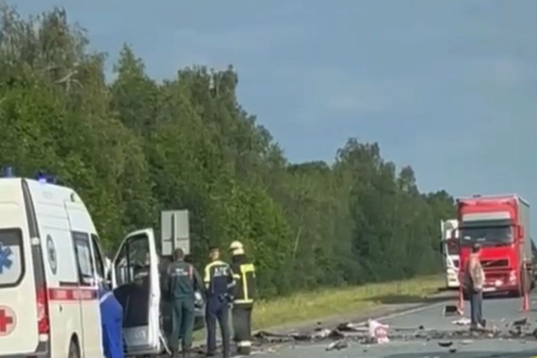 Судя по видео, прибывшие спасатели вынуждены были резать кузов специнструментом, чтобы освободить находившихся в машине людей. Грузовой автомобиль съехал в кювет и остановился лишь у растущих вдоль дороги деревьев.