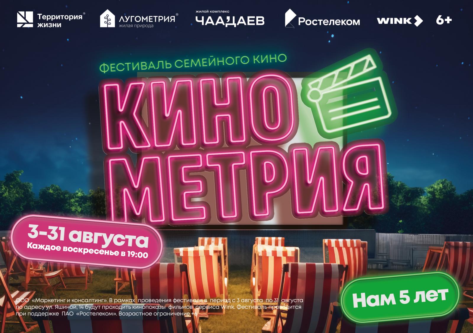 Приготовьтесь к яркому августу! Группа компаний «Территория жизни» и «Ростелеком» при поддержке видеосервиса Wink приглашают пензенцев на юбилейный, пятый по счету, кинофестиваль «Кинометрия»!