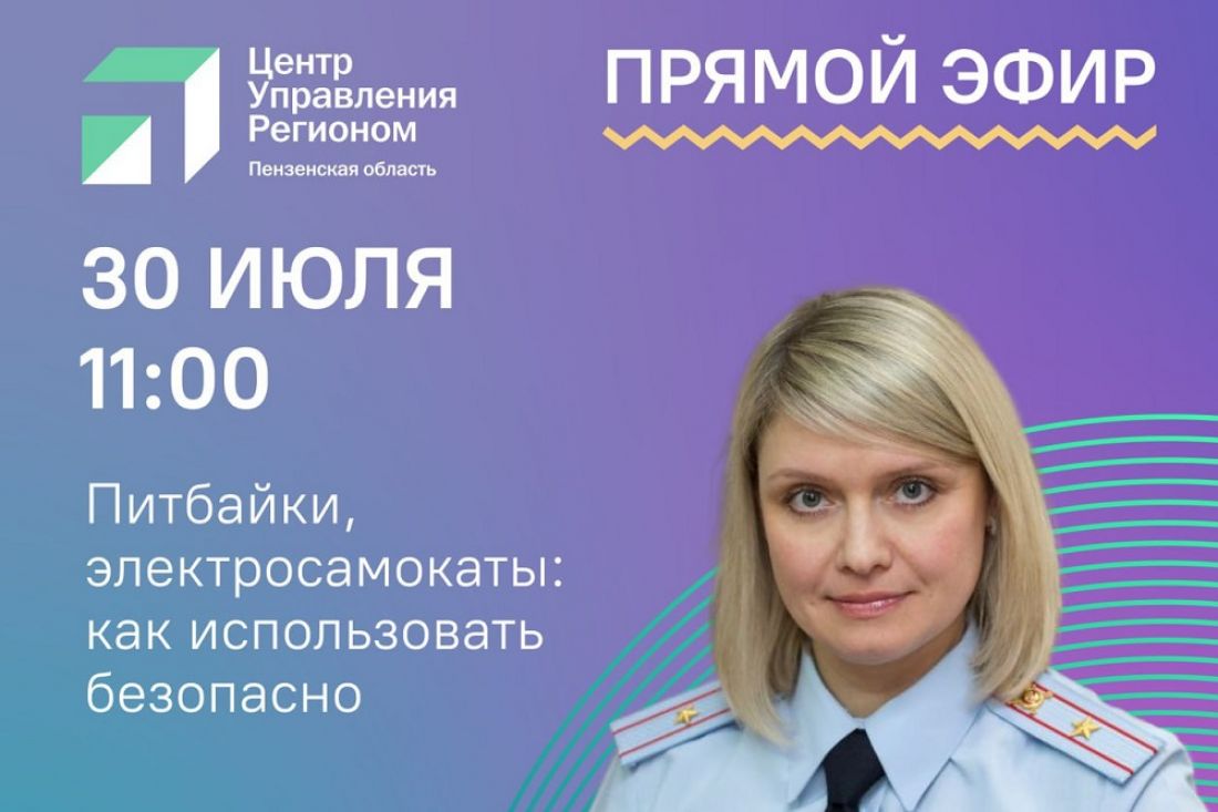 В среду, 30 июля, Центр управления регионом проведет прямой эфир с начальником отделения управления Госавтоинспекции Пензенской области Юлией Кибиткиной.