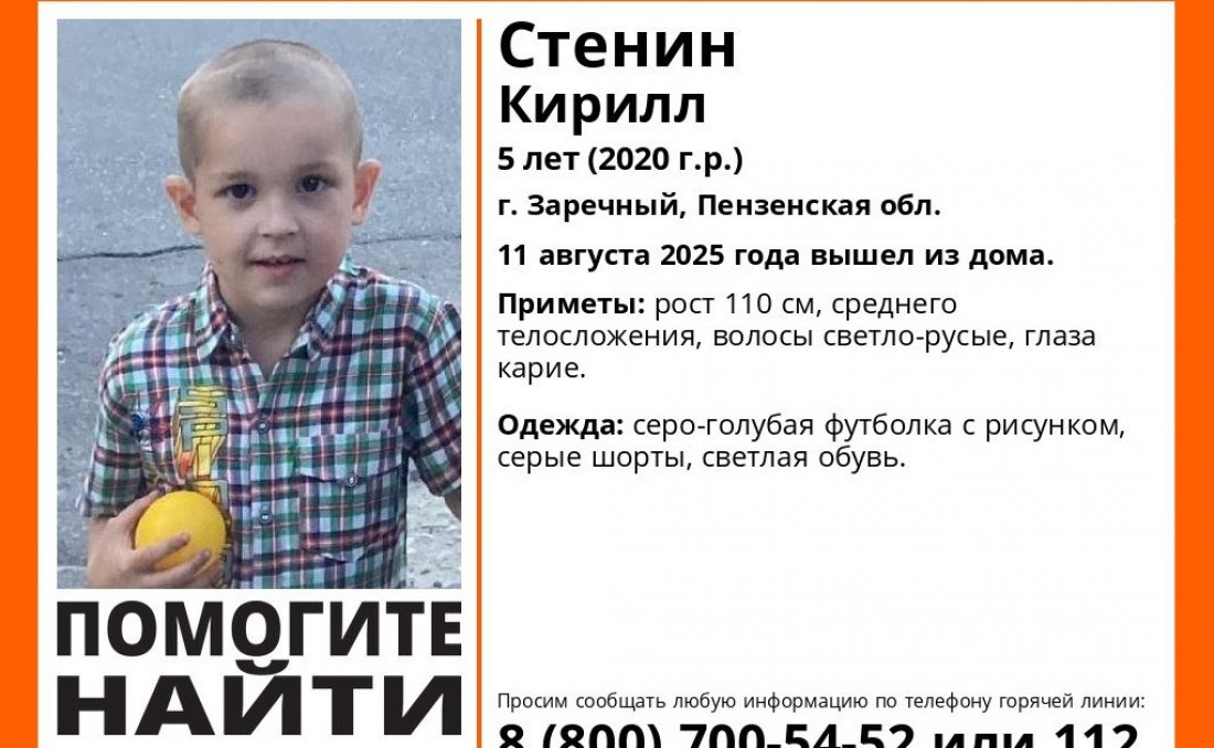 11 августа 5-летний мальчик вышел из дома и пропал.