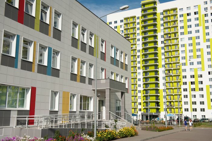Развитая инфраструктура. Жилой комплекс уже имеет все необходимое для самостоятельной жизни. Три детских садика на молодой микрорайон. Две школы готовая и любимая жителями №78 им. В.А. Глазунова и новая, на 1100 мест. Первые этажи строений застройщик отвел под коммерческие помещения: магазины, офисы, аптеки, спортивные студии, кафе, кофейни и многое другое. Также в шаговой доступности есть два крупных торговых центра, в которых представлены магазины бытовой техники, салоны одежды, детские развлекательные площадки. В районе появился уникальный дворец спорта «Хрустальный». В ближайшее время завершится благоустройство набережной, где жители с удовольствием смогут проводить время.