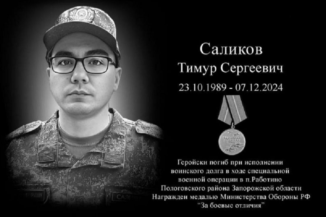 Этот государственный знак отличия передали семье бойца в память о беззаветном служении Родине и героической гибели Тимура Саликова 7 декабря 2024 года во время специальной военной операции на территории Запорожской области.