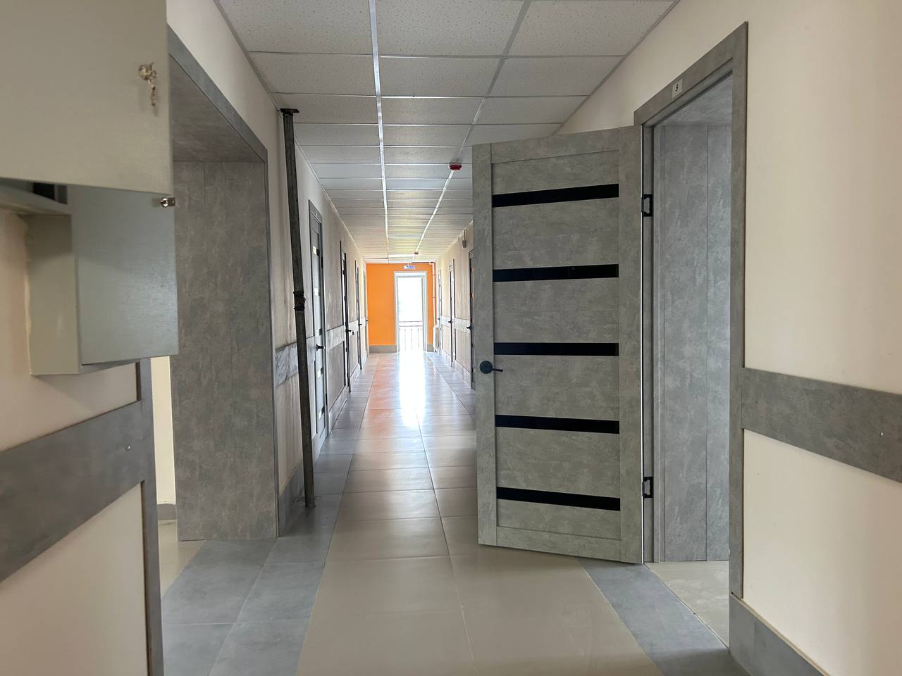 Строители выполнили стяжку и заливку пола, зачистку стен, электромонтажные работы, установку оконных блоков, покраску и облицовку стен кафелем.