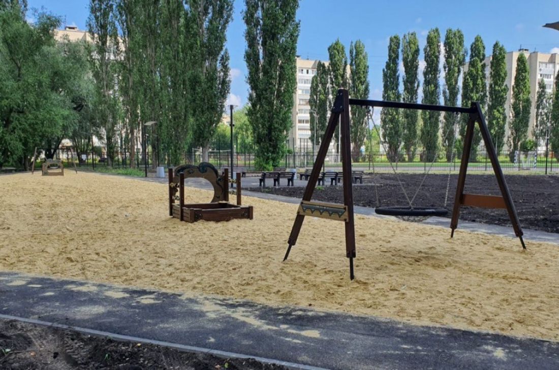Особое внимание было уделено детской площадке. Новые качели уже стали популярны у местных жителей. Сейчас рабочие выравнивают площадку, чтобы оборудовать место для игр и занятий спортом.