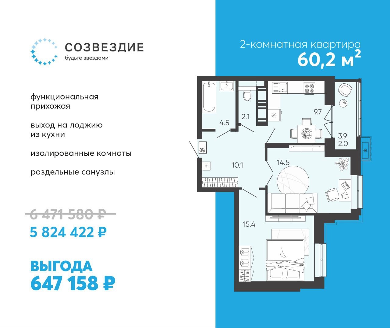 Минус 647 тыс. руб: квартира недели в ЖК «Созвездие»