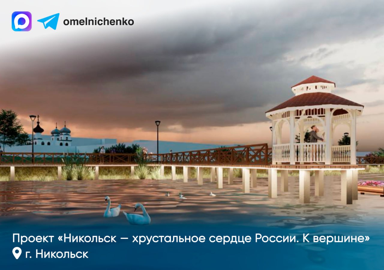 — Никольск (категория малые города с населением до 20 тысяч человек). Населенному пункту выделят 76,5 миллиона рублей на реализацию проекта «Никольск — хрустальное сердце России. К вершине», в рамках которого предусматривается благоустройство нижнего пруда районного центра;