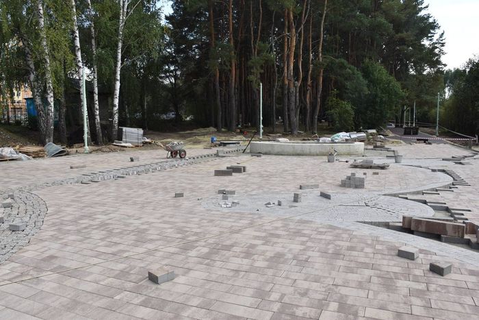 В настоящее время они монтируют опоры освещения в зоне отдыха и делают основания под клумбы и игровые элементы.
