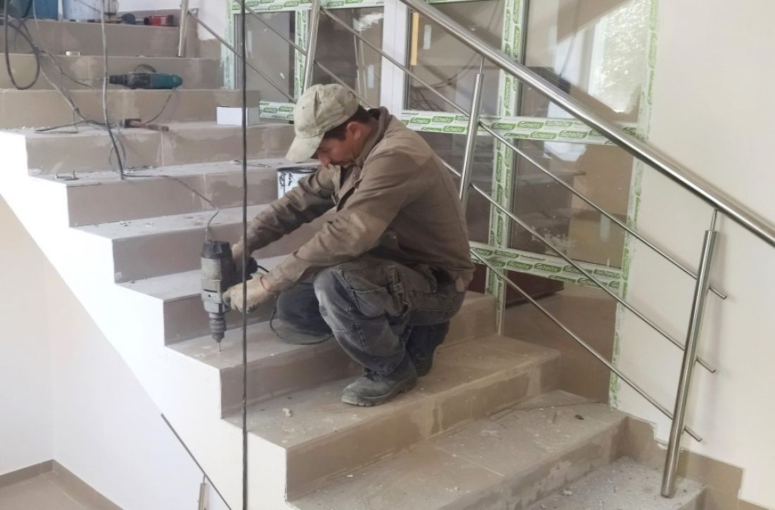 На втором этаже строители завершили демонтаж, установили новые двери и приступили к покраске стен. Параллельно ведется замена инженерных коммуникаций и монтаж перил на лестничных пролетах.