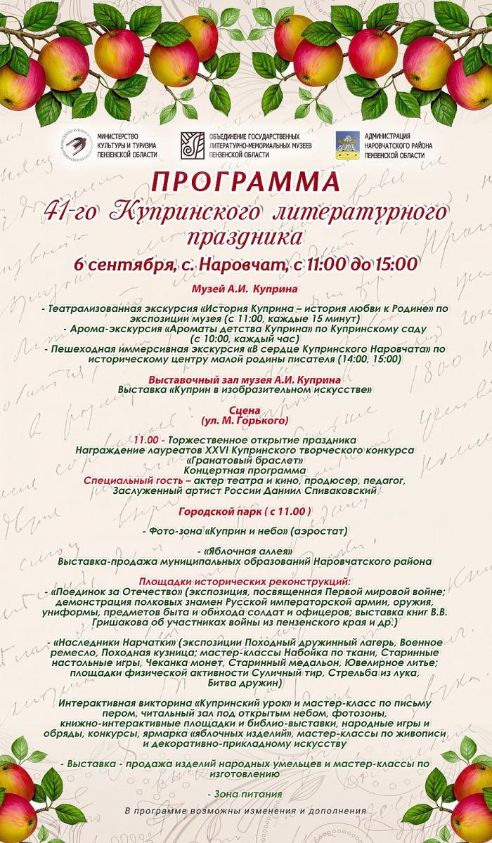 Опубликована программа Купринского праздника в Пензе и Наровчате (0+)