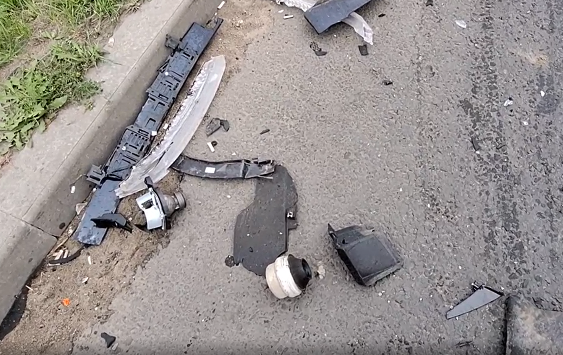 На кадрах запечатлены попавшие в аварию машины. Транспортные средства получили серьезные повреждения, фрагменты автомобилей разлетелись по проезжей части.