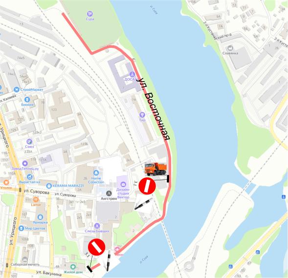 В Пензе будет введен запрет стоянки и движения транспорта на дороге по ул. Восточной - на участке от ул. Бакунина до пересечения с железнодорожным полотном (район мотодрома «Сура»).
