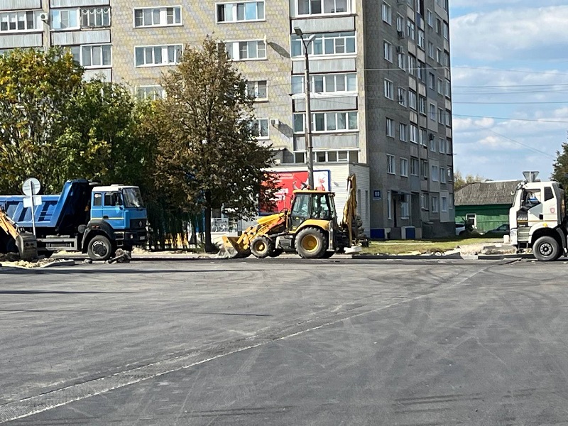 Подрядная организация провела работы на территории городской площади. На улицах Стекловская и Ленина активно укладывают второй слой асфальта.