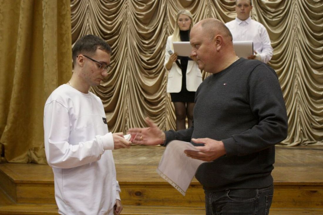 Награду из рук военного комиссара Кузнецка, Кузнецкого и Сосновоборского районов Александра Баранова и замглавы администрации Кузнецка Ирины Рузановой получил сын погибшего и студент 4 курса колледжа Никита Мамонтов.