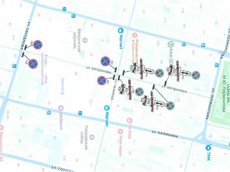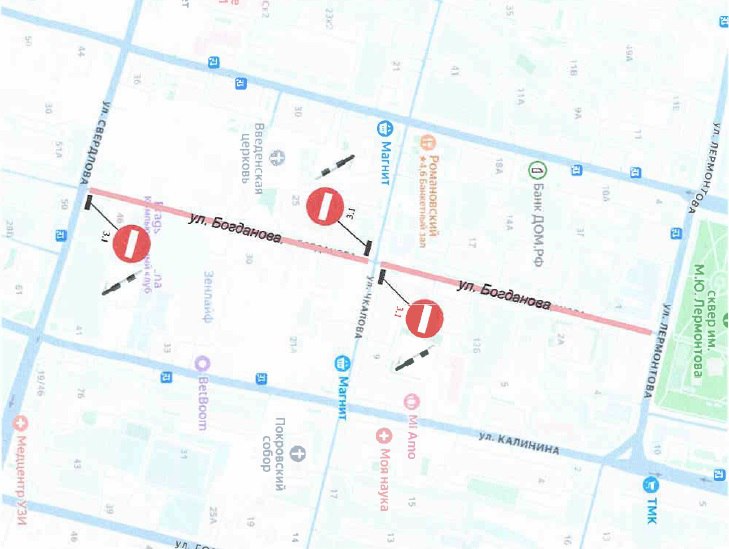 С 13:00 до 14:30 21 сентября также будет запрещено движение автомобилей по улице Богданова (от улицы Лермонтова до улицы Свердлова).