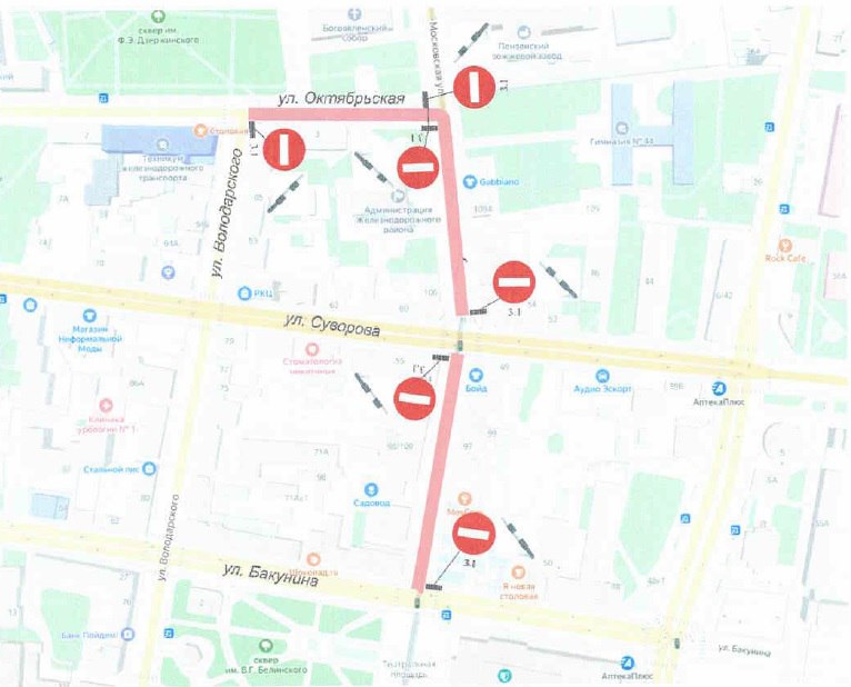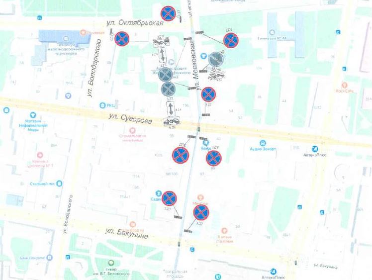 Помимо этого, с 12:00 до 14:30 21 сентября будет запрещен проезд по улице Октябрьской (от улицы Володарского до улицы Московской) и по улице Московской (от улицы Октябрьской до улицы Бакунина).