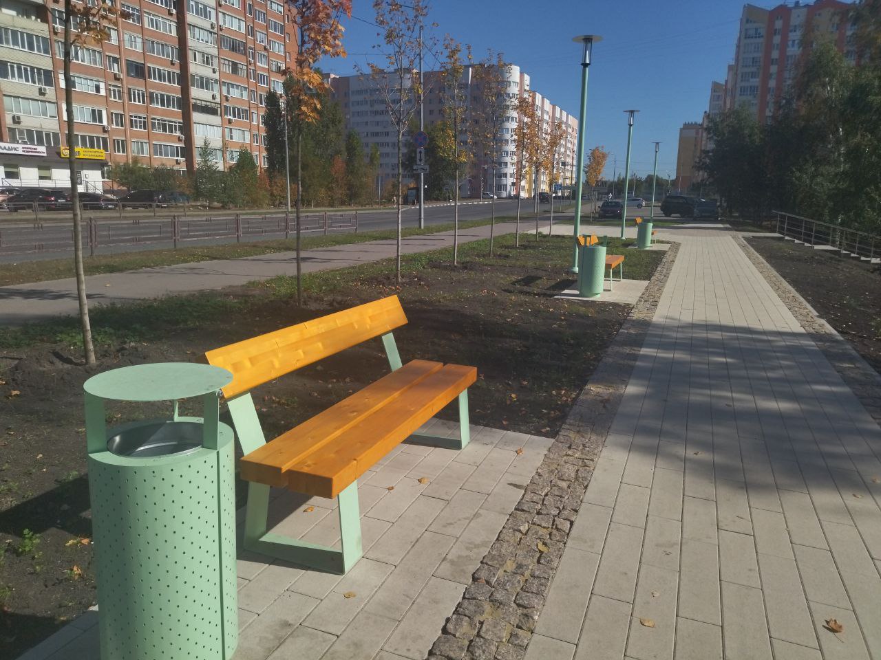 Пензенцы обратили внимание на удобный пандус для маломобильных групп населения и родителей с колясками. По душе горожанам пришлось и колористическое решение, выбранное для фонарей и урн - их окрасили в мятный цвет.