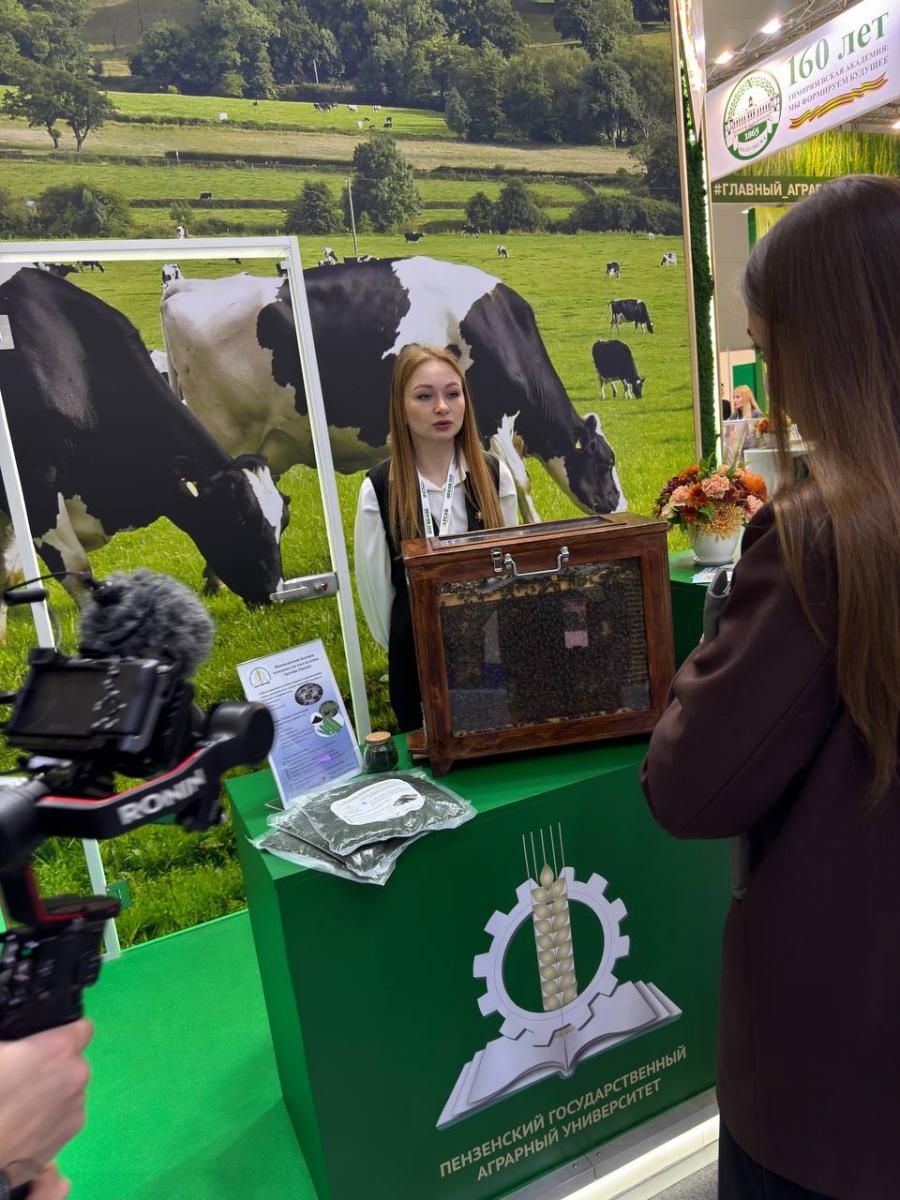 На стенде Министерства сельского хозяйства Пензенской области можно увидеть экспозицию Пензенского государственного аграрного университета с разработкой инновационной белковой подкормки для кормления пчел. Она создана на основе микроводорослей.