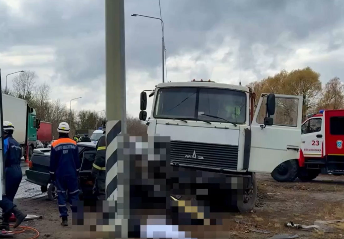 В аварии погибли водитель легковой машины и два его пассажира, личности которых устанавливаются.