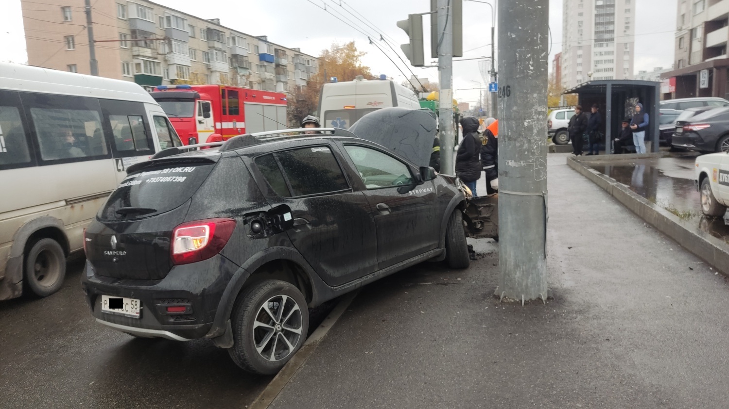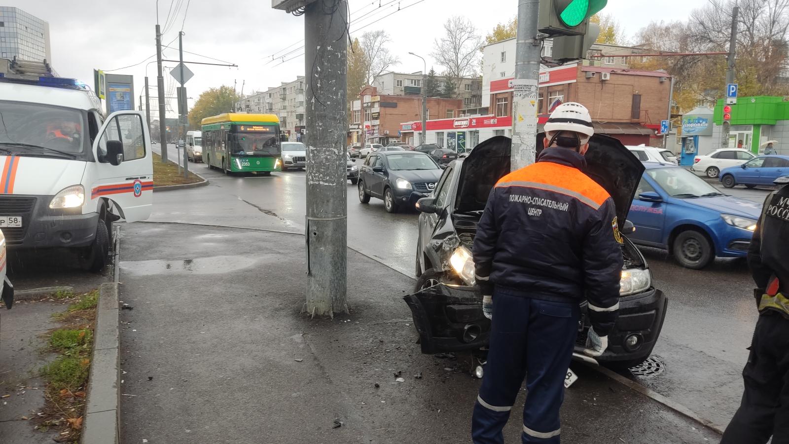 Появились фото с места наезда машины на столб на ул. Суворова в Пензе