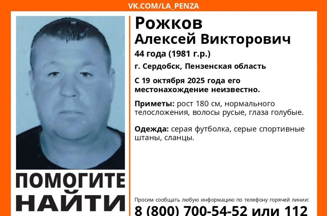 Поисками 44-летнего жителя Сердобска Пензенской области Алексея Рожкова занимаются близкие, полиция и добровольцы.