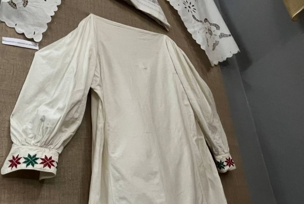 «Этот элемент одежды найти для коллекции очень сложно. Нам она досталась от семьи, которая случайно нашла вещь у своей бабушки. О такой традиции они не знали, поэтому похоронили родственницу в другой одежде», – пояснил Дмитрий Баранов.