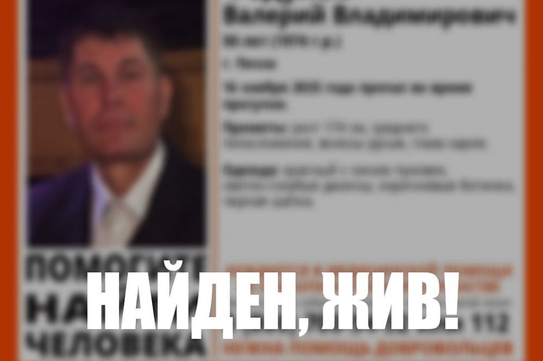 В 21:19 воскресенья появилась информация о предположительном обнаружении пензенца, а в 22:04 поисковики написали, что Валерий Федулов найден живым.