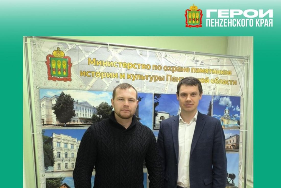 Финалист проекта «Герои Пензенского края», ветеран СВО Евгений Тихонов в рамках стажировки встретился с министром по охране памятников истории и культуры Пензенской области Александром Понякиным.