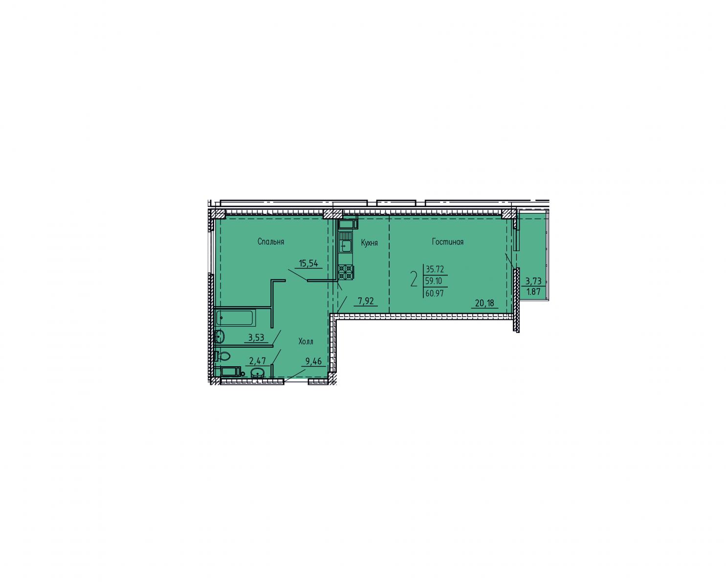 ***Расчет произведен для квартиры площадью 60,97 кв.м, расположенной по адресу : г. Пенза, ул. Генерала Глазунова, 6, очередь №1. Дом введен в эксплуатацию.