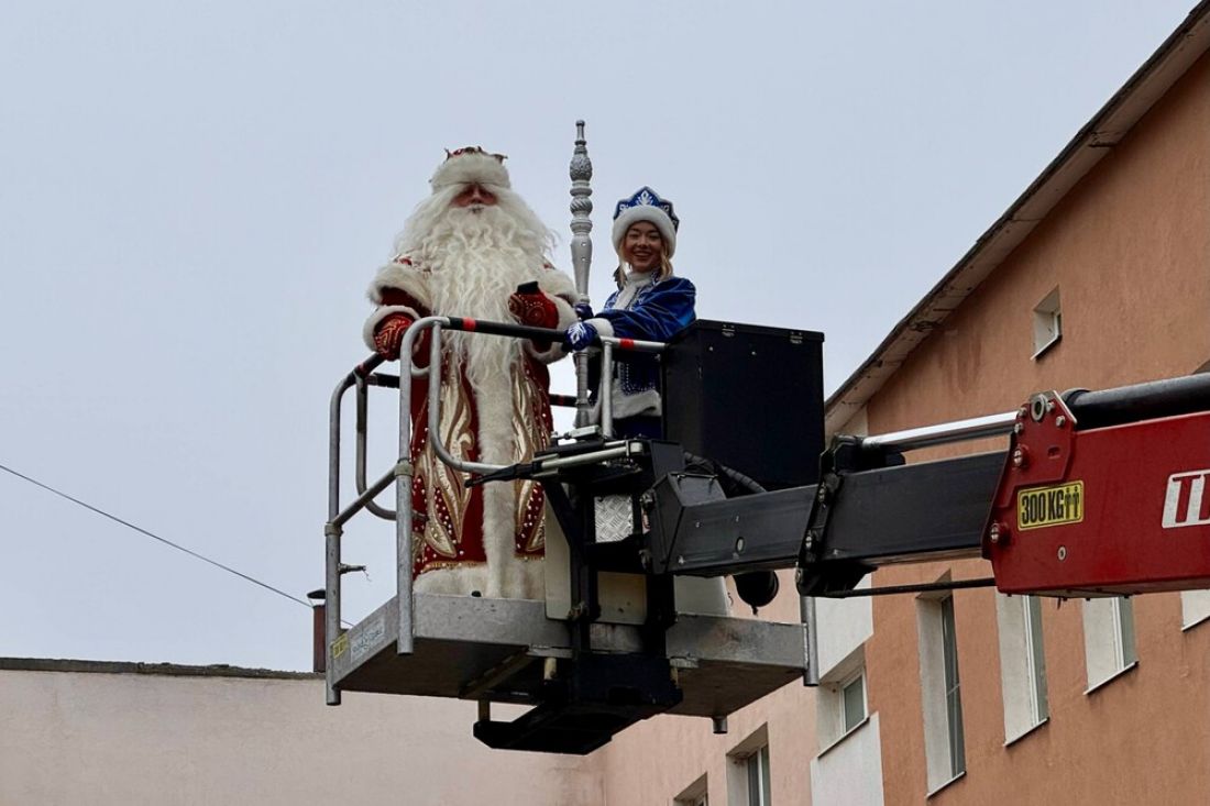 В Пензе Дед Мороз поднялся на автовышке к окнам детской больницы