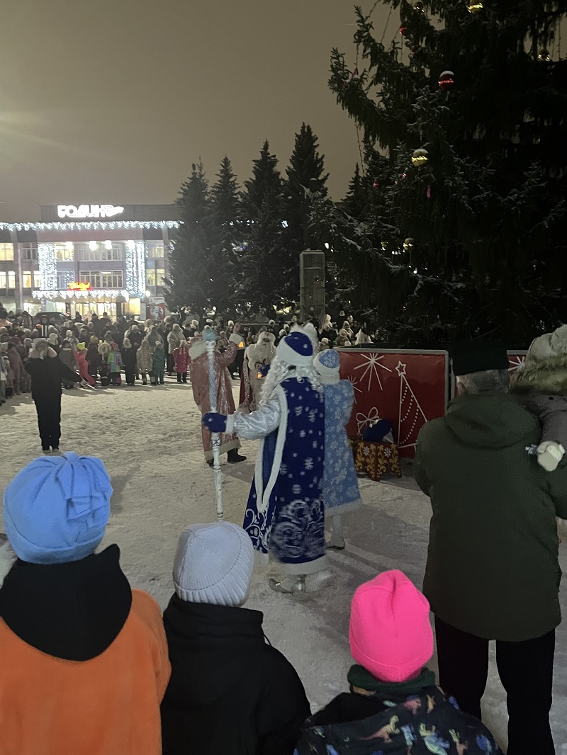 В этот вечер у главной городской елки собрались кузнечане. Их ждала праздничная программа с Дедом Морозом и Снегурочкой. Дети радовались новогоднему хороводу, зимним играм и забавам с ростовыми куклами. Взрослые тоже участвовали в развлекательной программе.