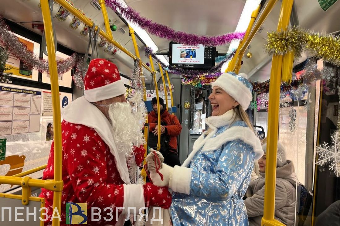 Пассажиров пензенских троллейбусов поздравили Дед Мороз и Снегурочка