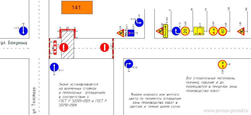 На улице Бакунина в Пензе временно перекроют движение