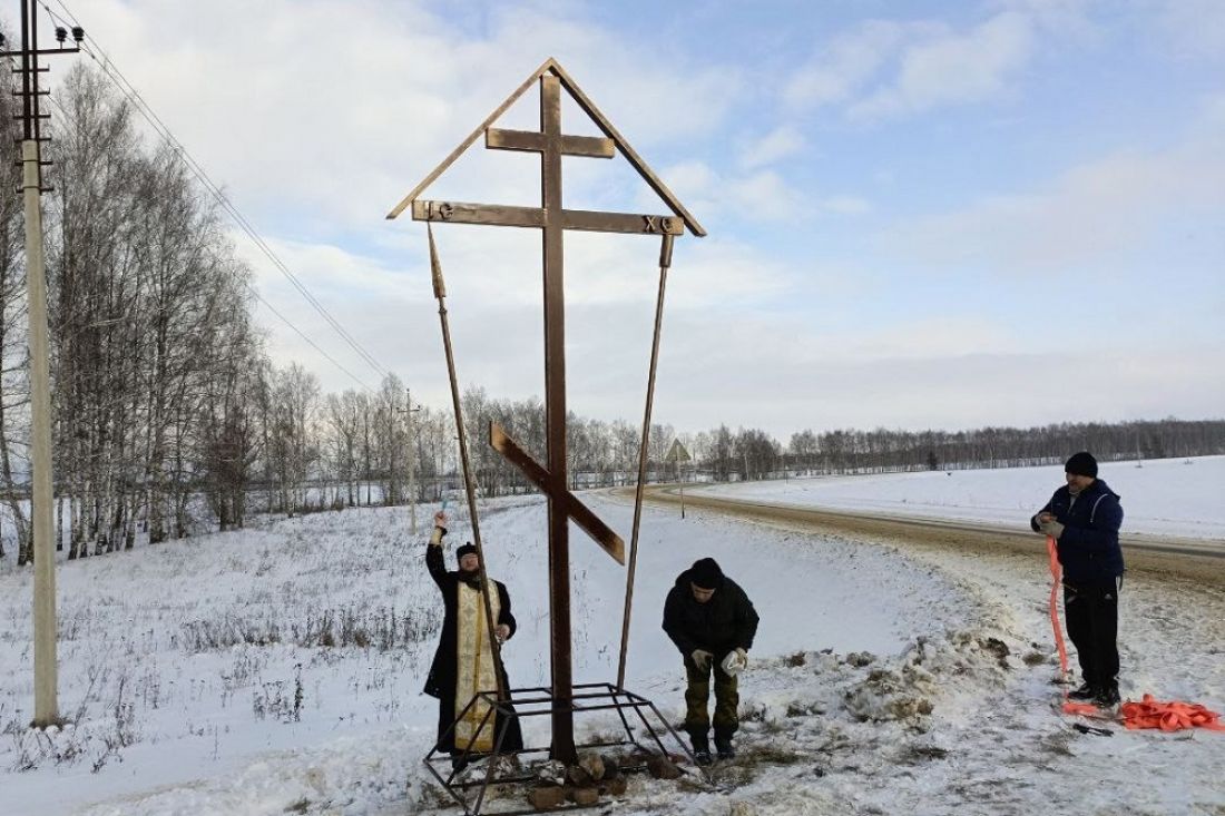 30 декабря при въезде в село Большие Хутора Нижнеломовского района провели освящение поклонного креста.