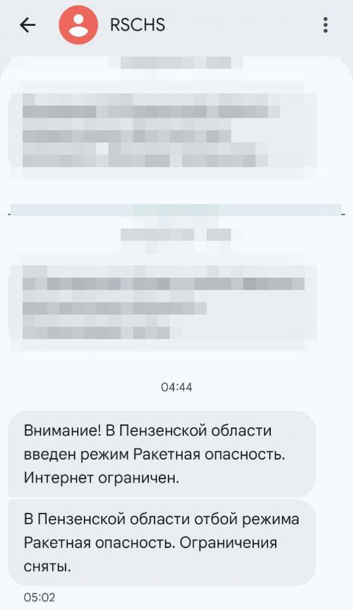Информация об этом пришла на телефон от представителей системы предупреждения и ликвидации чрезвычайных ситуаций (РСЧС) в 04:44 14 января. «Внимание! В Пензенской области введен режим «Ракетная опасность. Интернет ограничен», - было написано в смс.
