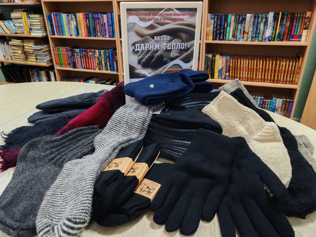 Пензенская областная библиотека для детей и юношества участвует в акции «Дарим тепло!». Для бойцов СВО можно передать теплые носки, варежки и перчатки. Принести вещи можно до 23 февраля, с 10:00 до 16:00 по адресу: ул. Толстого, 8а.